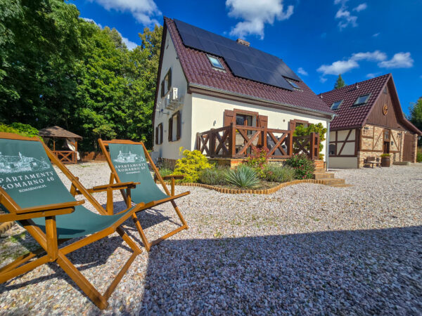 Komarno 46 to nasze miejsce w sercu Karkonoszy. Stworzyliśmy dla Państwa obiekt znajdujący się na pokaźnej 33 arowej działce z Domem i Domkiem. Dom, czyli stuletni budynek odrestaurowany z zachowaniem szacunku do historii tego miejsca. Zaś Domek pod Świerkami- mała perełka wśród wielkich, starych świerków. Poza budynkami mamy dla Państwa przygotowaną przestrzeń do wypoczynku, czy biesiadowania. Drewniane altany, murowane grille, hamaki na poniemieckich drzewach to tylko część udogodnień jakie dla Państwa stworzyliśmy. Serdecznie zapraszamy do zapoznania się z dokładnymi opisami apartamentów i w razie potrzeby kontaktu z nami. Do zobaczenia