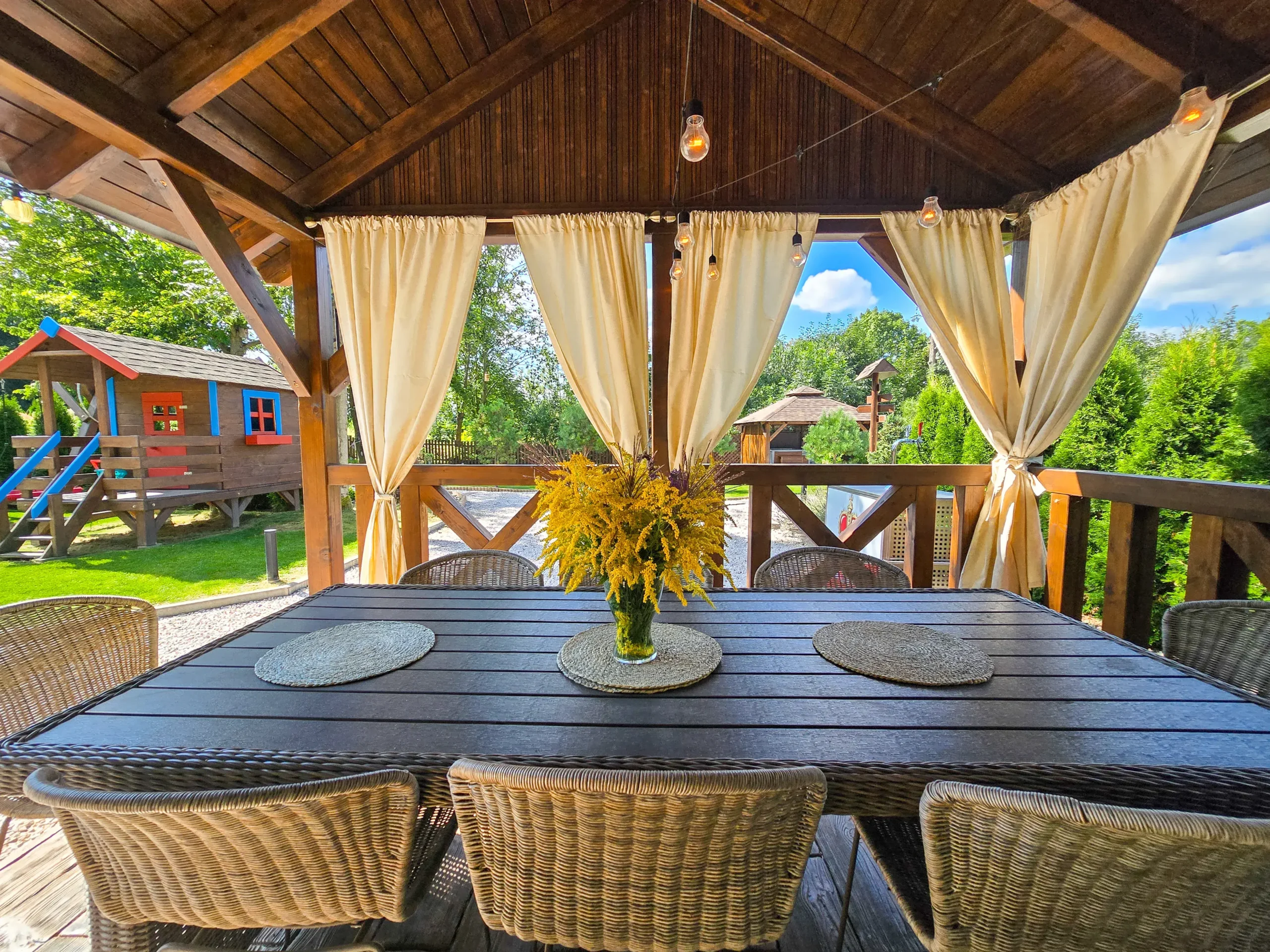 W ogrodzie przygotowaliśmy murowany grill oraz palenisko z rusztem, które pozwala na wspólne grillowanie w wyjątkowej atmosferze. Ogień, trzaskające drewno i zapach grillowanych potraw sprawiają, że każdy posiłek nabiera niepowtarzalnego klimatu.