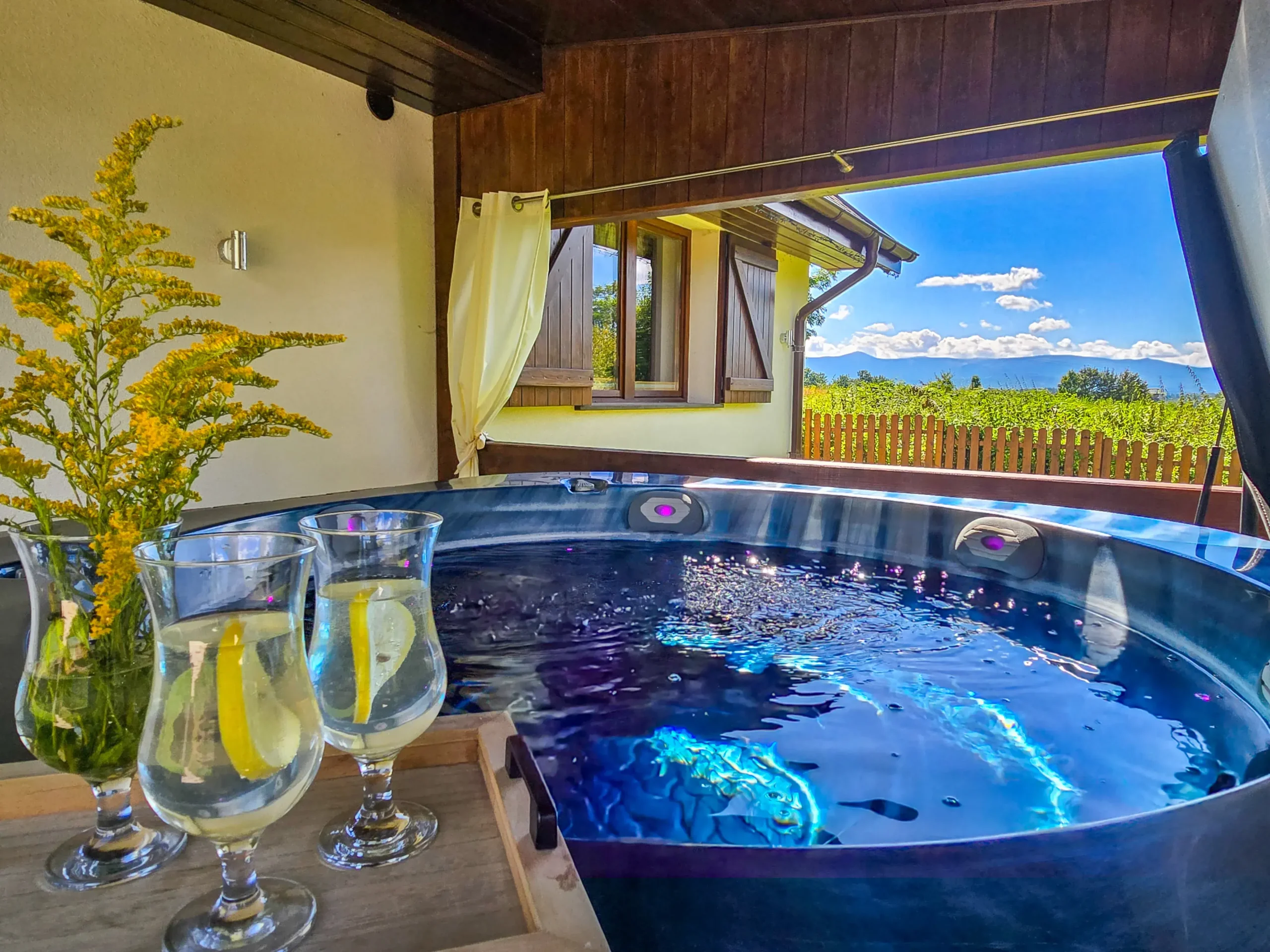 Domek posiada indywidualne jacuzzi.